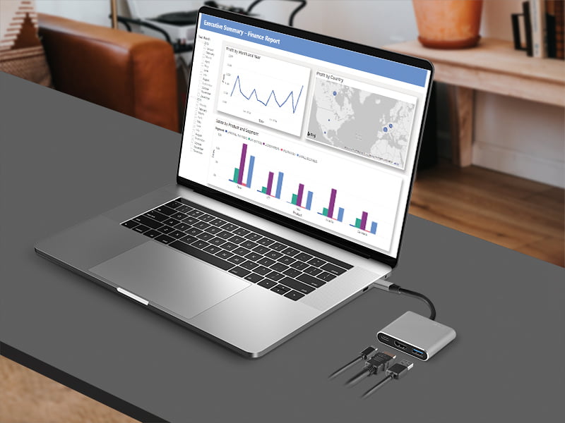 Tracer A-1 este un adaptor multifuncțional care va îmbunătăți conectivitatea PC-ului sau laptopului dumneavoastră. Este echipat cu un conector USB-C și trei porturi care vă vor permite să conectați și să operați simultan și alte dispozitive compatibile. Portul USB 3.1 vă permite să utilizați periferice convenabile pentru computer, cum ar fi o tastatură sau un mouse extern, și oferă transfer rapid de date de până la 5 Gbps. Cu portul HDMI 1.4, puteți conecta un monitor sau un proiector suplimentar și puteți lucra confortabil pe un ecran mai mare. Acest standard acceptă calitatea 4K, ceea ce va face vizionarea de filme sau petrecerea timpului cu jocul dvs. preferat și mai plăcută. Al treilea port oferă încărcare rapidă pentru noile iPhone-uri, iPad-uri, MacBook-uri și alte dispozitive compatibile cu USB-C.