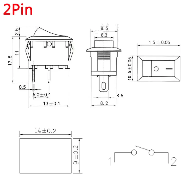Buton PUSH ON/OFF 250V 3A 10×15 2 pin