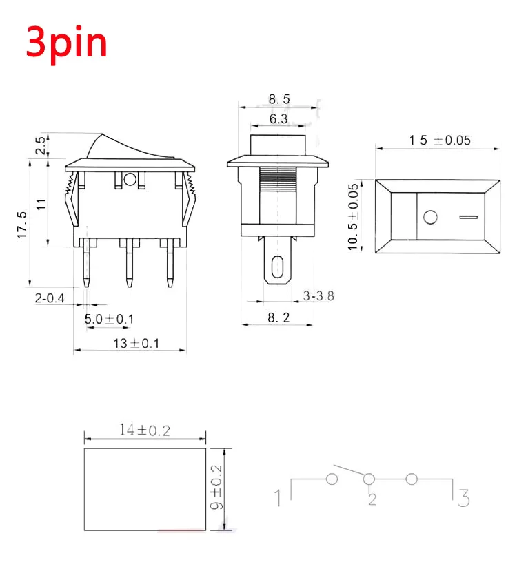 Buton PUSH ON/OFF 250V 3A 10×15 3 pin