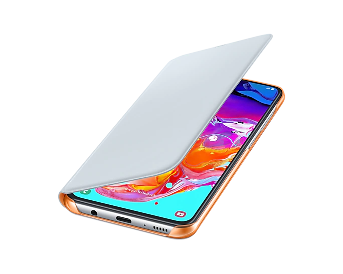 • Mulțumită senzorului intuitiv încorporat, husa tip portofel pentru Galaxy A70 oprește și pornește în mod automat ecranul telefonului tău pentru o utilizare simplă.