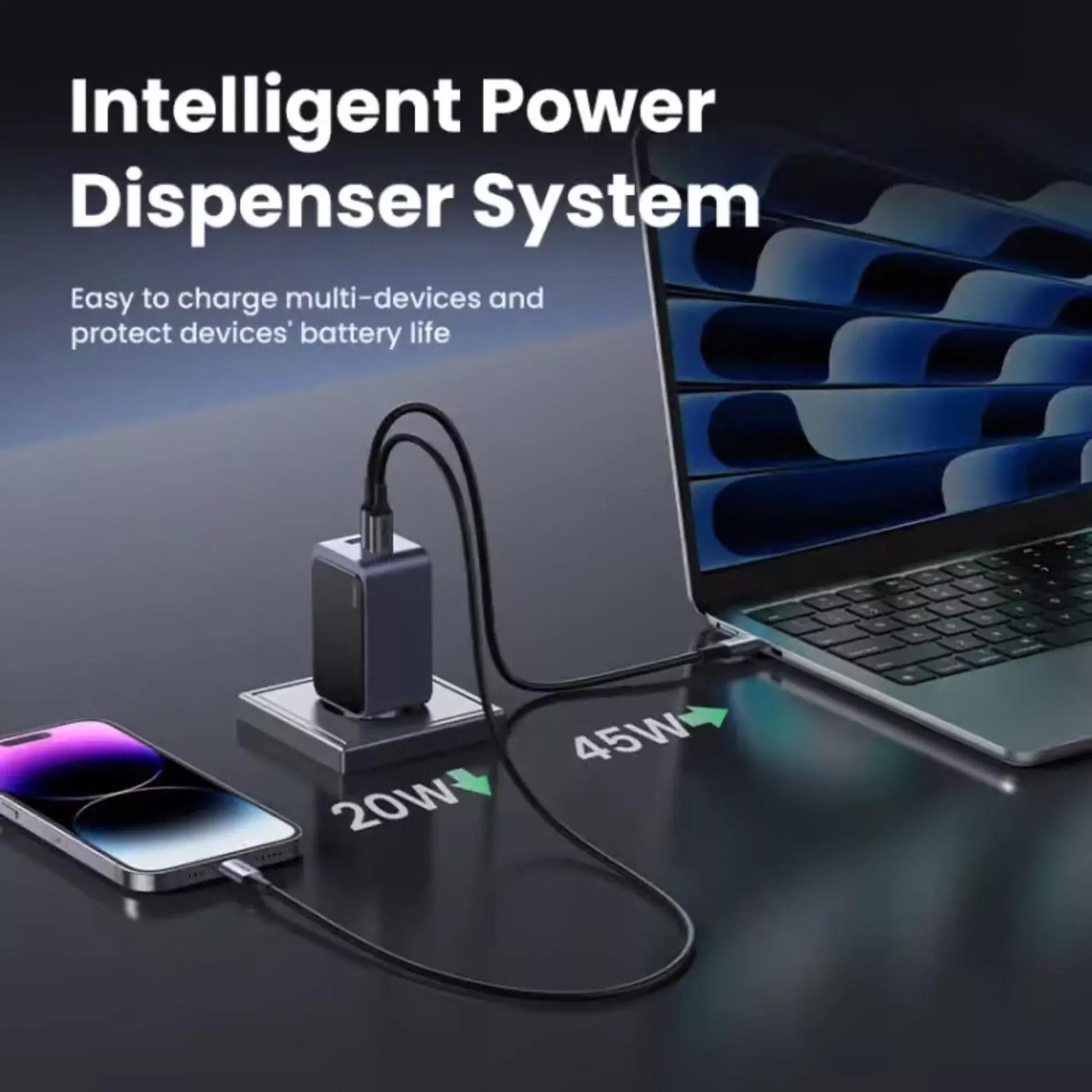Bucurati-va de puterea de iesire de pana la 65 W cu Ugreen Nexode Air, asigurand incarcare rapida pentru toate dispozitivele dvs.