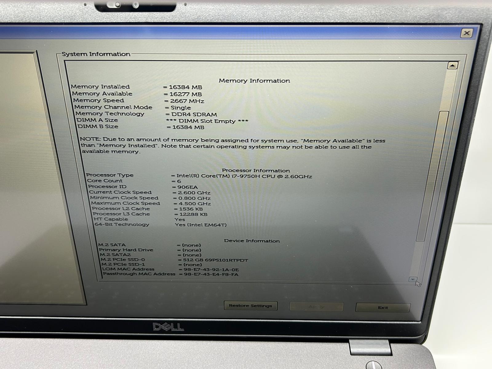 Laptop SH Dell Precision 3541 i7-9750H 16Gb RAM SSD NVME 512 GB