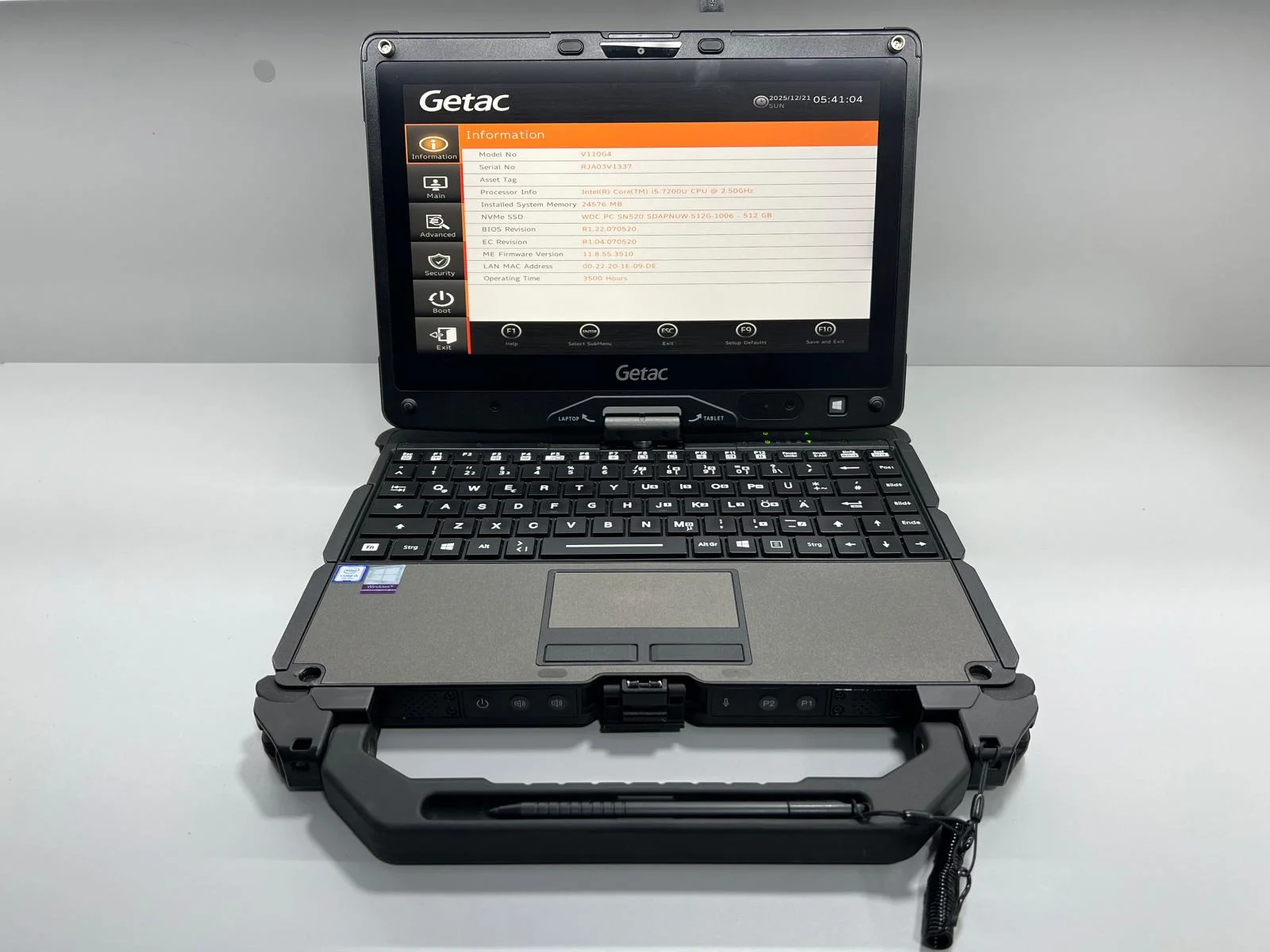 Laptop SH GETAC Fully Rugged i5-7200U NVME 512GB 24GB Ram Touchscreen convertible Tablet