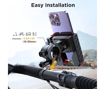 Joyroom JR-ZS266 este un suport de telefon versatil si rezistent, ideal pentru montarea pe bicicleta, trotineta, carucior sau chiar banda de alergat.