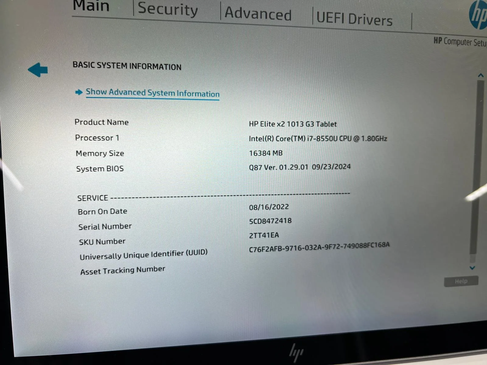 Tableta SH HP ELITE X2 G3 i7-8550U 16GB RAM 512 SSD NVME BATERIE NOUA