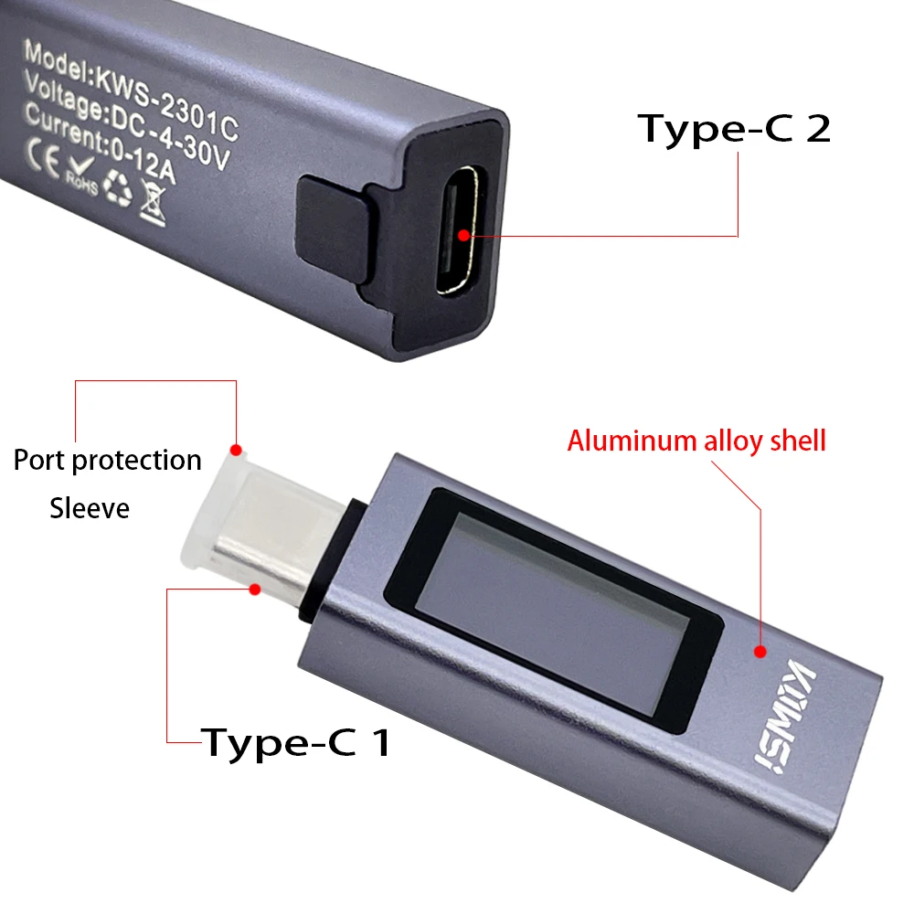 Tester USB 11 in 1 type C 4-30V 12A dublu sens ampermetru voltmetru digital KWS-2301C