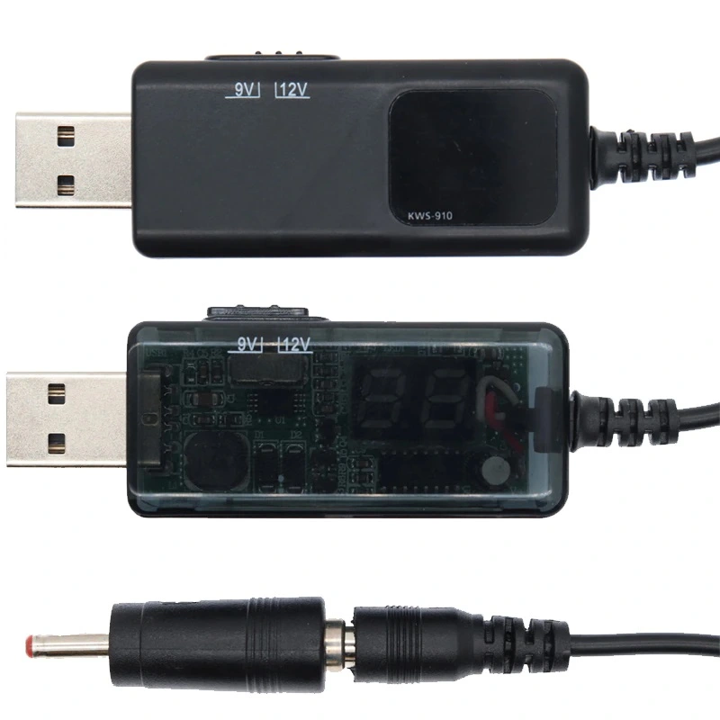 - Regulatorul Step up este proiectat cu comutator, puteți alege ieșirea de 9v sau 12v prin intermediul acestuia, iar afișajul LED ar spune valoarea tensiunii de ieșire.